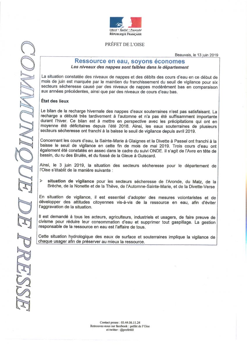 ommuniqué de la Préfecture relatif à l'usage de l'eau
