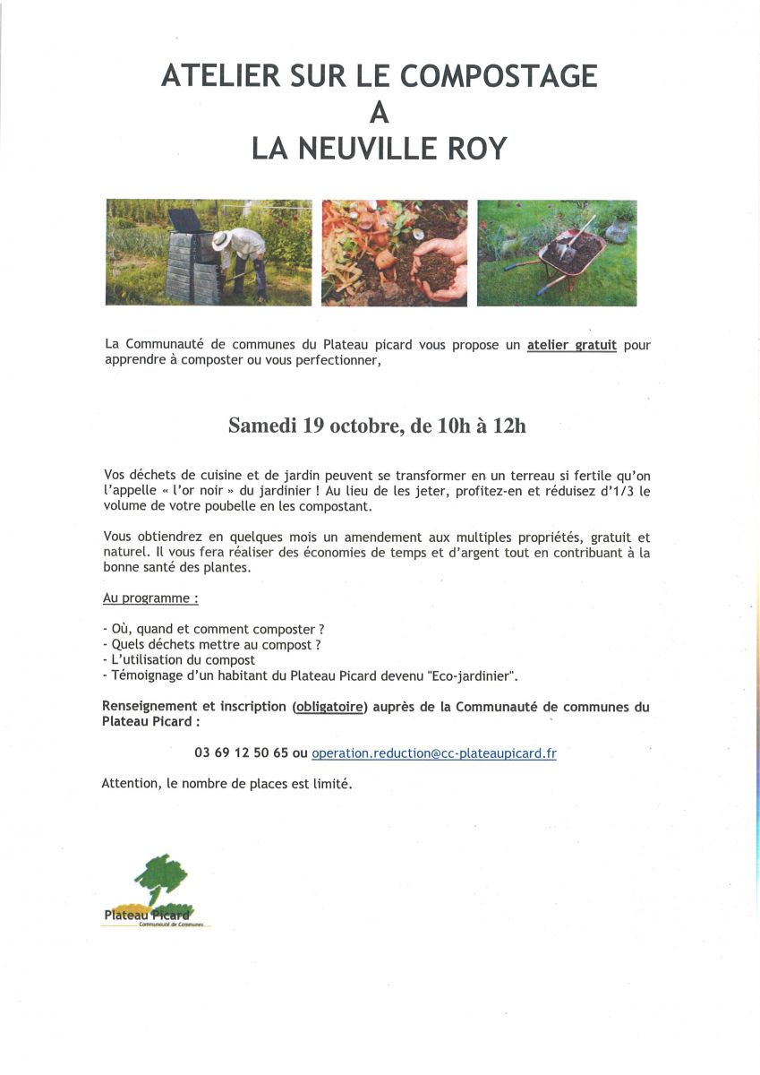 telier gratuit sur le compostage le samedi 19 octobre de 10 heures à 12 heures