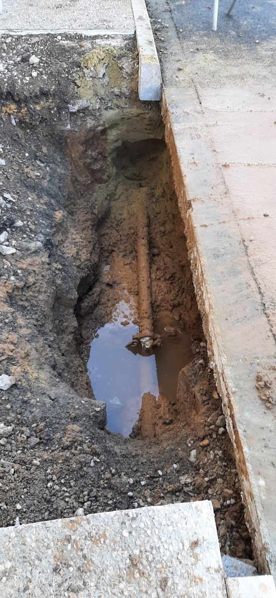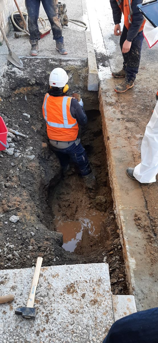 Tout le monde a été réuni ce jour pour l'ouverture de la tranchée dans le but de mettre à jour la canalisation d'eau. Les opérations se sont déroulées sous la surveillance d'un huissier qui a pu repartir avec les morceaux de la canalisation en vue d'une expertise en laboratoire.