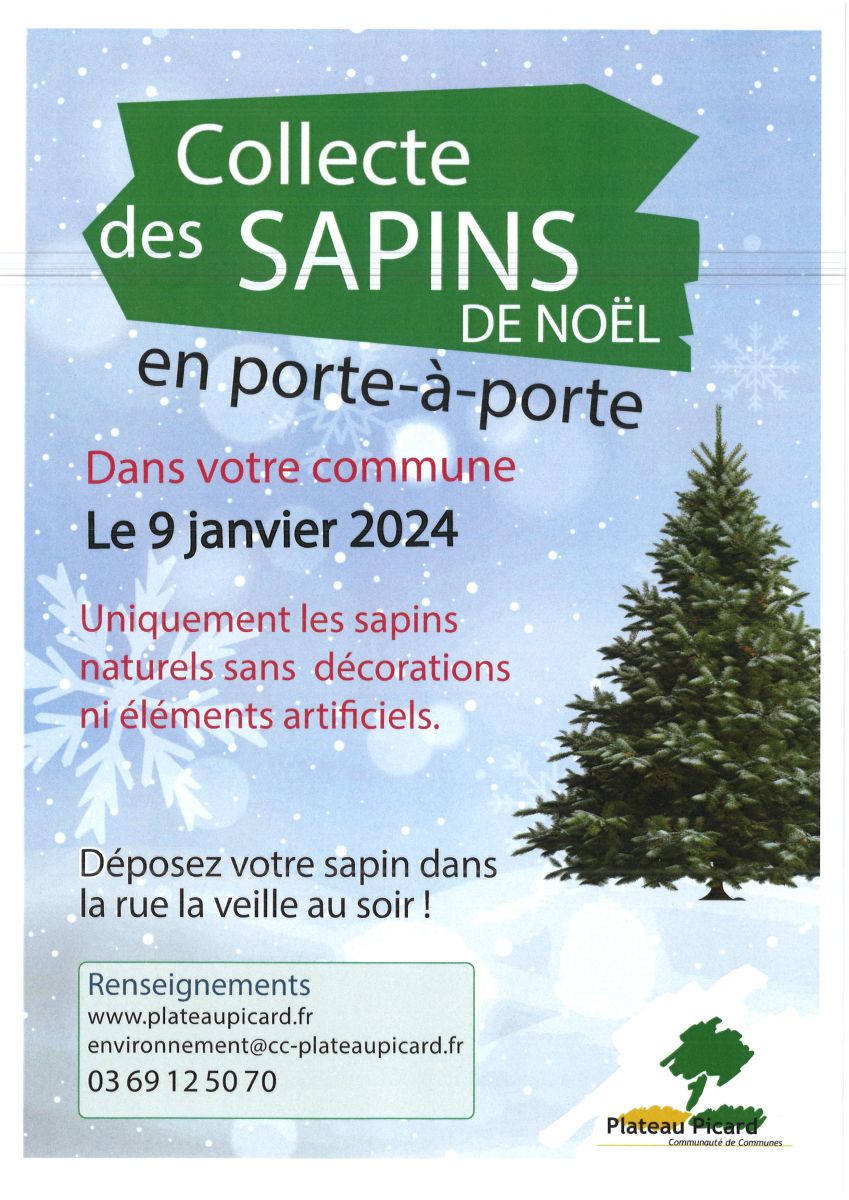 ollecte des sapins de Noël en porte à porte le mardi 9 janvier 2024