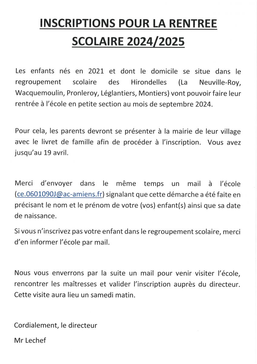 Enfants nés en 2021, inscriptions à l'école maternelle