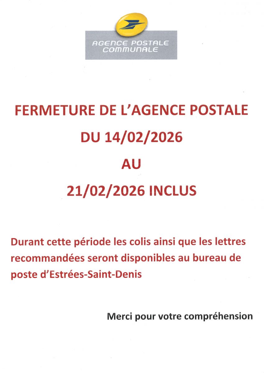 ermeture de l'agence postale communale 14/02 au 21/02/2026